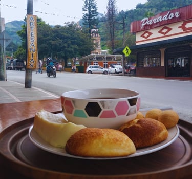 Ubicados a pocos pasos del parque principal de Cajamarca, disfruta de aguapanela con queso y almojábanas de maiz, un verdadero deleite para tus sentidos.